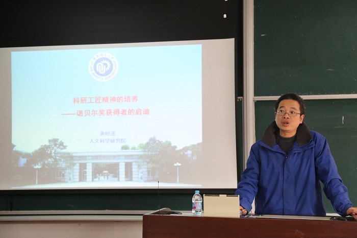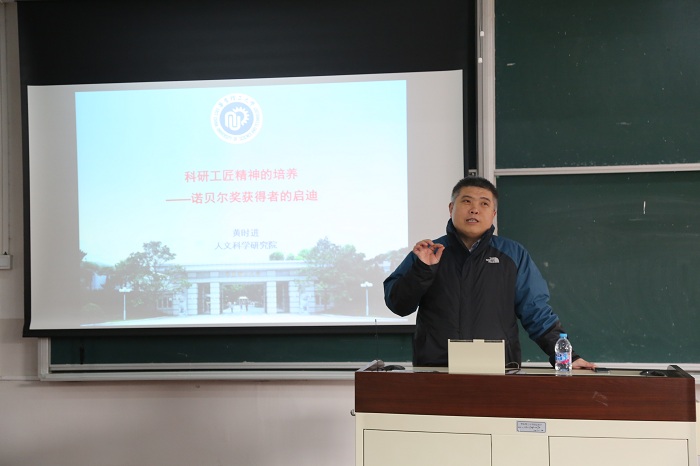 黄时进指出工匠精神是对所做工作精益求精、追求极致的态度,是具有超凡的动手能力和创新能力,并以国外诺贝尔奖获得者的故事为例,讲述了什么是“工匠精神”以及高度的动手能力对科学研究的重要性。