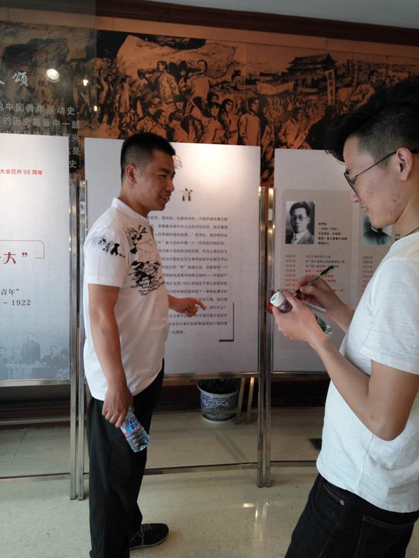 4、阳光明媚的初夏午后,我们304永利集团的几个党支部联合组织了参观团中央机关旧址和中共淞浦特委机关旧址。我们走在繁华的淮海中路上,拐进了一条不起眼的弄堂里,看到了红墙黑瓦的渔阳里6号------团中央机关旧址,这里和外面仿佛是两个世界,没有了喧嚣,自是一片静谧的天地。映入眼帘的序厅里挂着一幅横跨三面墙的巨幅铜板壁画。五四运动、刘胡兰就义、红军长征、新中国成立、草原英雄小姐妹、女排夺冠、杨利伟乘“神舟五号”升空等画面,真实再现了80多年来我国青年运动蓬勃发展的光辉历程。在刘少奇、任弼时、俞秀松这些名字的映衬下,我仿佛看到了那时作为一名青年人所担负的抱负和责任,我们也要像他们一样坚定着自己的理想,发挥着自己的光和热,把渔阳里6号的光芒和影响穿透地域和时空的界限,继续发扬光大。