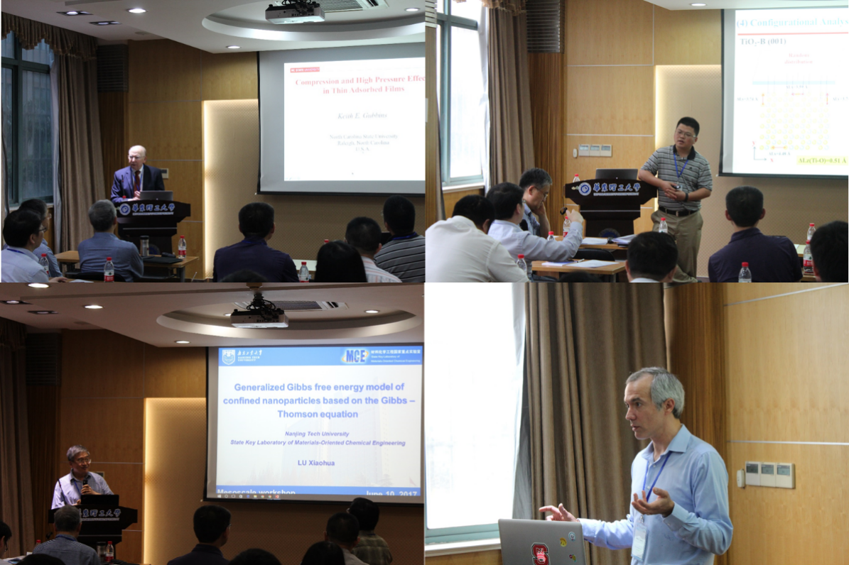 本次会议主题包括:介尺度现象与实验研究;模型与理论以及计算方法与模拟。会议邀请到了美国工程院院士、北卡州立大学化工热力学专家Keith E. Gubbins教授,北卡州立大学Erik Santiso教授,美国俄克拉荷马大学化工系黄亮亮教授等国外学者,也邀请到了南京工业大学国家“973计划”首席科学家陆小华教授,浙江工业大学杰青基金获得者王建国教授、浙江大学王琦教授等国内知名专家;海内外参会代表共计50余人。大会瞄准国内外关于介尺度问题研究的前沿和最新进展,旨在为该领域研究人员提供一个思想碰撞和学术交流的平台。