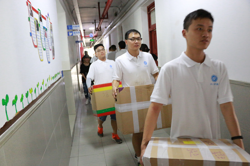 为切实践行社会主义核心价值观,秉承中国共产党“全心全意为人民服务”的宗旨,加强研究生党员的党性锻炼,2017年7月9日,304永利集团组织研究生党员在徐汇校区接待和帮助我院14级本科生顺利完成宿舍搬迁工作。期间,学院党委书记、院长朱学栋和党委副书记高艺霞莅临现场指导工作,为志愿者带来院党委和学院的亲切慰问并与大家合影留恋。研究生辅导员于靖、本科生辅导员李扬和强莉等老师全程指导搬迁工作的具体开展并为志愿者们送来了清凉,滋润了心房。研究生会志愿者服务部部长褚衍倩协同做了大量的组织工作。
