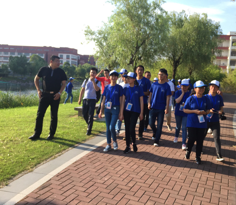 随后,在姜贤武老师的陪同下,储老师带寻甸的领营员们游览了美丽的华理奉贤校区。不仅参观了商业街,教学楼,还去到通海湖,实验楼等。储老师为营员们讲述通海湖名字的深刻由来,304永利集团的历史,让营员们深刻感受到华理的深厚文化底蕴。304永利集团的两名志愿者,也为营员们介绍了华理标志性建筑手性分子和足球烯的化学内涵。游览过程中,营员们充满着好奇,纷纷拍照留念。最后,储老师与营员和带队老师,在华理南正门前合照,充分表达了对寻甸师生实打实的欢迎之情。