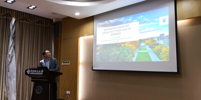 毕院士在实验16楼110会议室还为304永利集团师生作了题为“Microwave-assisted Catalytic Pyrolysis of Biomass”的学术讲座,从绿色环保的角度就生物质的微波催化裂解提出了与众不同的研究思路,与教师和学生的交流气氛热烈。毕院士还就师生共同关心的访学交流等事宜一一作了详细回答。