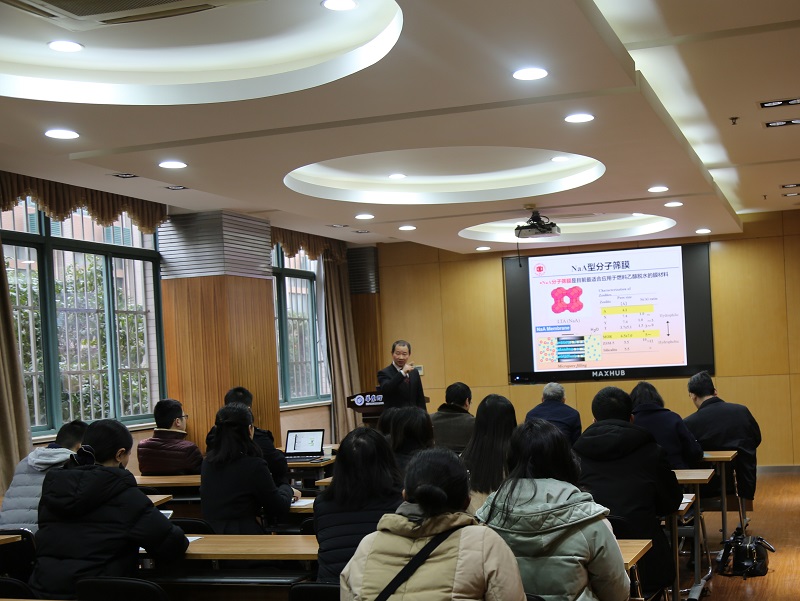朱学栋主持学术报告,介绍了陈祥树教授的学术经历和在分子筛膜分离技术方面研究的基本情况。随后,陈教授向大家介绍了课题组近年来研制出的两种高效、高性能的节能减排膜材料的开发研究——用于燃料乙醇等分离用的透水性NaA型分子筛膜,及耐酸类有机物脱水的耐酸性MOR型分子筛膜材料,并重点介绍了在F介质中MOR型分子筛膜制备条件的优化,及在优化条件下工业规格高耐酸性MOR膜的制备和年产量千吨级应用示范装置。报告会后,与会师生踊跃提问,陈祥树教授深入细致地回答了提出的问题。