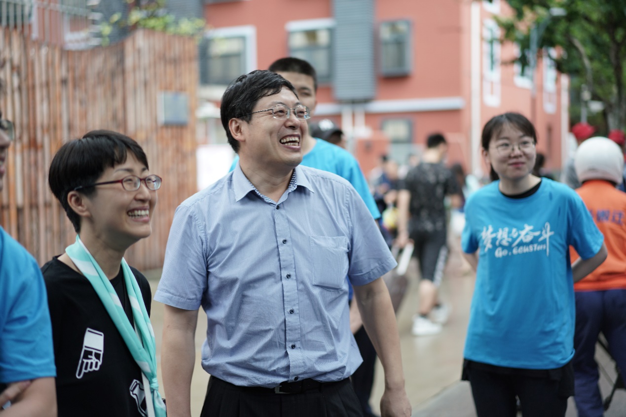 搬迁过程中,本科青年志愿者协会成员、研究生党支部成员组成的志愿者队伍,始终奔赴一线,他们主动扛起沉重的行李,不辞辛苦的奔波于寝室和堆放点之间。即使大雨倾盆,也浇不灭他们服务奉贤的热情。朱学栋等与志愿者亲切交谈,高度赞扬他们的志愿精神与服务热情,并为志愿者发放了降暑饮品。