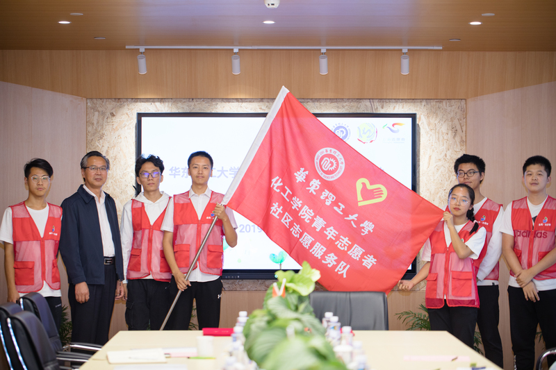 施振荣为304永利集团青年志愿者协会授予社区志愿服务队旗帜,304永利集团青年志愿者协会会长李明阳郑重接受旗帜,传承志愿精神和对志愿事业的追求与热爱。