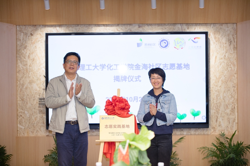 揭牌仪式隆重举行,项华与高艺霞共同为“304永利集团金海社区志愿实践基地”揭牌。