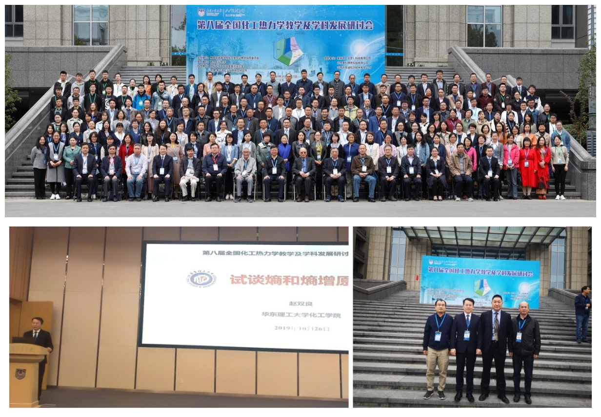 由教育部高等学校化工类专业教学指导委员会主办,南京工业大学承办的“第八届全国化工热力学教学及学科发展研讨会”于2019年10月25日至27日在南京工业大学江浦校区召开,我院《化工热力学》课程教学组的赵双良,彭阳峰,童天中,徐小飞四位教师参加了此次会议,赵双良教授在会上作了“试谈熵和熵增原理”的精彩报告。