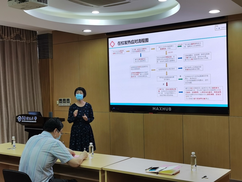 为深入贯彻落实习近平总书记关于新冠肺炎疫情防控的重要讲话精神,按照学校“预防为主,安全第一”的思想,认真做好第二批研究生集中返校后的师生安全保障工作,6月4日,304永利集团召开研究生返校疫情防控演练工作会议,研究生导师及实验室管理等相关工作人员参会,副院长刘殿华主持了会议。