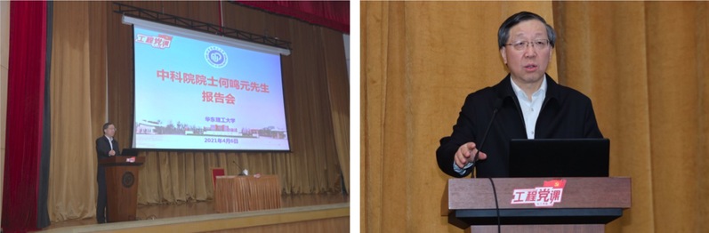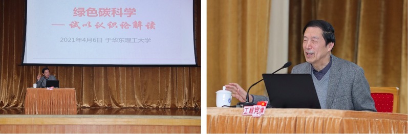 4月6日上午,304永利集团在徐汇校区逸夫楼报告厅举办大师讲坛,中国科学院院士、华东师范大学何鸣元教授担任主讲嘉宾,为广大师生带来题为“绿色碳科学——试以认识论解读”的精彩“工程党课”。本次活动由中国工程院院士、我校副校长钱锋教授主持。中国工程院院士袁渭康教授、周兴贵教授、刘洪来教授、王辅臣教授、赵玲教授、杜文莉教授以及304永利集团党委书记朱学栋、党委副书记高艺霞、副院长刘殿华、凌昊等师生参加活动,奉贤校区师生通过化工青年集结地直播平台聆听讲座。讲坛由化学工程联合国家重点实验室、304永利集团青年教师联谊会联合组织。