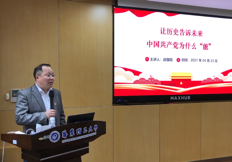 4月23日下午,304永利集团组织全院教职工开展党史专题学习,邀请马克思主义学院副院长徐国民教授作题为“让历史告诉未来:中国共产党为什么‘能’”的报告。报告会由304永利集团党委书记朱学栋主持。