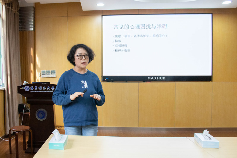 刘颋颋谈到,心理健康对于每一个人都十分重要。她通过分析具体的案例,深入浅出地介绍了常见的心理困扰与障碍,对专业名词准确明了地进行了详细解释。刘颋颋总结了几点判别方法,如何发现身边同学异常行为以及如何为身处困境中的个体提供有效帮助。心理委员作为心理危机预防的“观察员”“联络员”“宣传员”,在“学校、学院、班级、寝室”心理健康预警四级网络机制中发挥重要作用。她希望心理委员能够积极关注身边的每个人,并提醒绝不能凭借一己之力进行危机干预。刘颋颋还阐述了如何从学业完成、人际关系、情绪管理、自我认识、亲密关系、兴趣爱好等六个方面识别心理问题,并深入分析了心理病理形成的复杂过程以及相关的主要原因。针对研究生可能会出现的学业、职业发展以及人际关系等问题,她给出了详实的案例分析。在交流环节,刘颋颋以专业理论知识解读了学生对于原生家庭对心理健康影响的困惑,并推荐相关的书籍辅助自主学习。