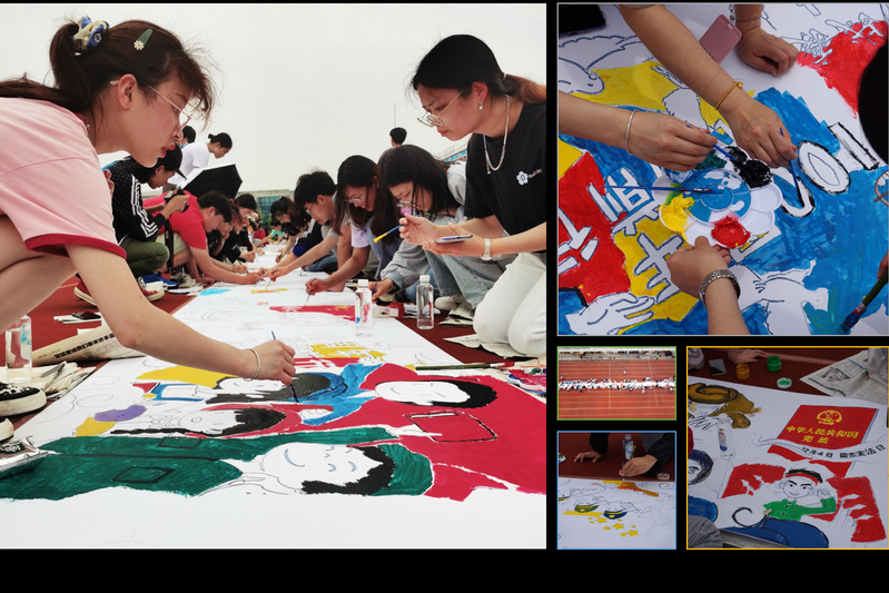 画卷由“追寻”“奋进”“传承”“致敬”四个版块构成,涵盖一大会址、抗日烽烟、抗美援朝、香港回归、建国大业、改革春风、党的十九大等40项元素。师生们用五彩斑斓的色彩绘制中国共产党百年风雨历程,巧妙运用色彩搭配,精心构思画面,绘制出壮阔的时代画卷,一笔一画深情地表达出对党的感恩之情和对祖国的美好祝愿。与此同时,活动现场展播红色歌曲,《红旗飘飘》《我和我的祖国》《北国之春》……一首首脍炙人口的经典歌谣悉数登场,或悠扬、或高亢、或欢快的旋律,伴着主持人的解说,让大家徜徉在红色经典的海洋里。