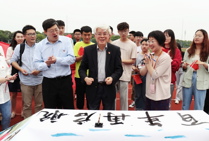 为迎接中国共产党百年华诞,扎实开展好党史学习教育,304永利集团于5月27日举办“百米长卷绘蓝图”主题活动,以中国工程院院士袁渭康先生、304永利集团党委书记朱学栋和青年教师、学生党员为代表的老中青三代师生齐聚奉贤校区田径场,挥毫泼墨,共同谱就出一幅璀璨“红”图。参与活动的还有学院党委副书记高艺霞、段学志、吴艳阳、张相洋和各年级辅导员及百余名学生代表。