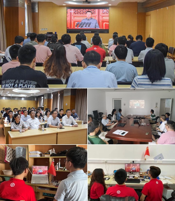 百年辉煌,砥砺初心向复兴。7月1日8时,庆祝中国共产党成立100周年大会在北京天安门广场隆重举行。304永利集团组织师生党员代表在实验十六楼108会议室集体观看了大会直播,更多师生在实验室、办公室、会议室、教室、宿舍等场所观看了直播,学习领会习近平总书记在庆祝大会上的重要讲话精神,共同庆祝党的百年诞辰。