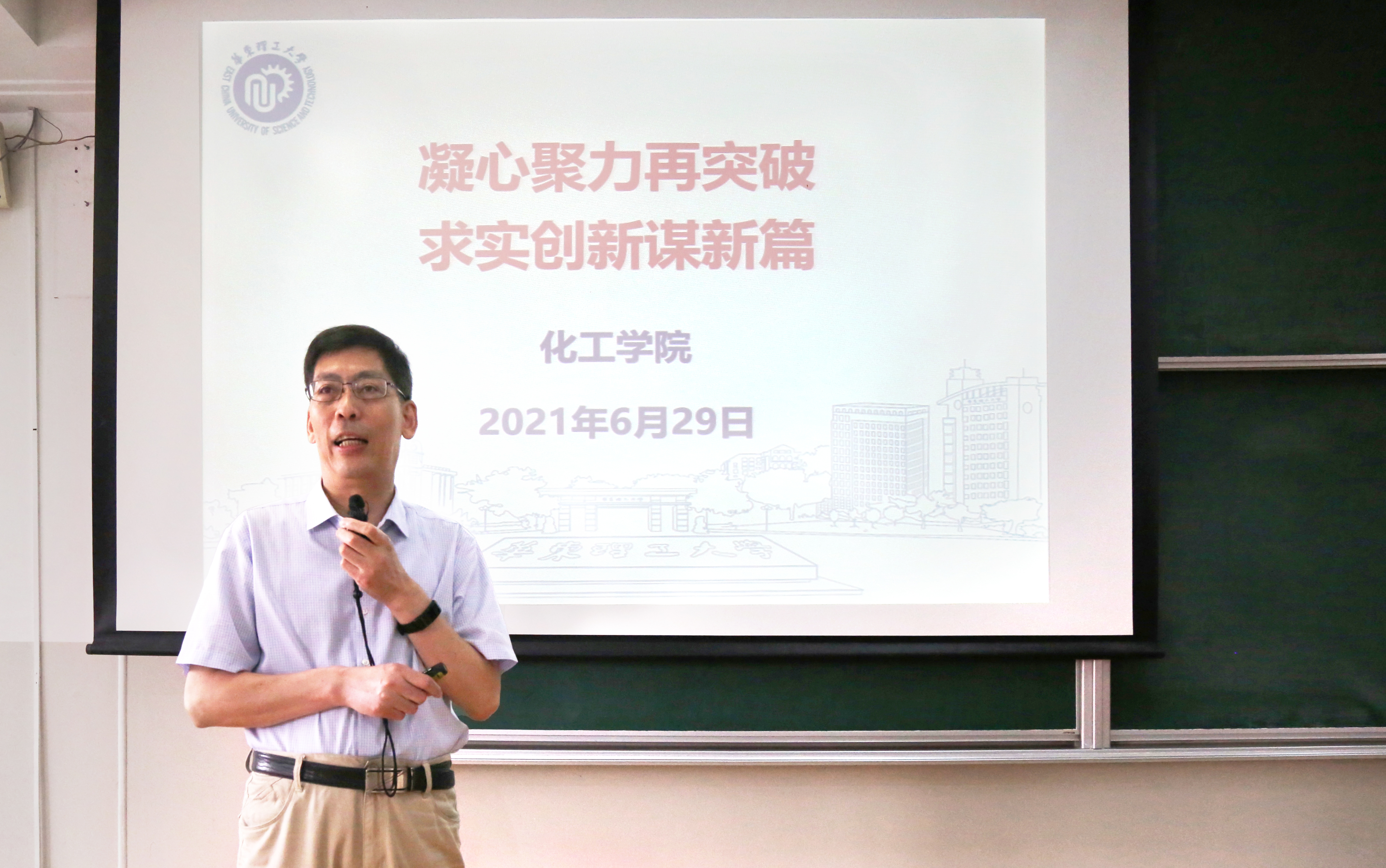最后,李春忠作了总结发言,他肯定了学院近年来取得的工作成绩,同时也指出学院在科研成果、国家级一流课程、学生竞赛获奖等方面还有较大提升空间,希望全体教师凝心聚力,砥砺奋进,以“新”善思、用“心”善为,共同营造良好的化工强国文化氛围,努力推动学院“十四五”高质量发展再上新台阶。