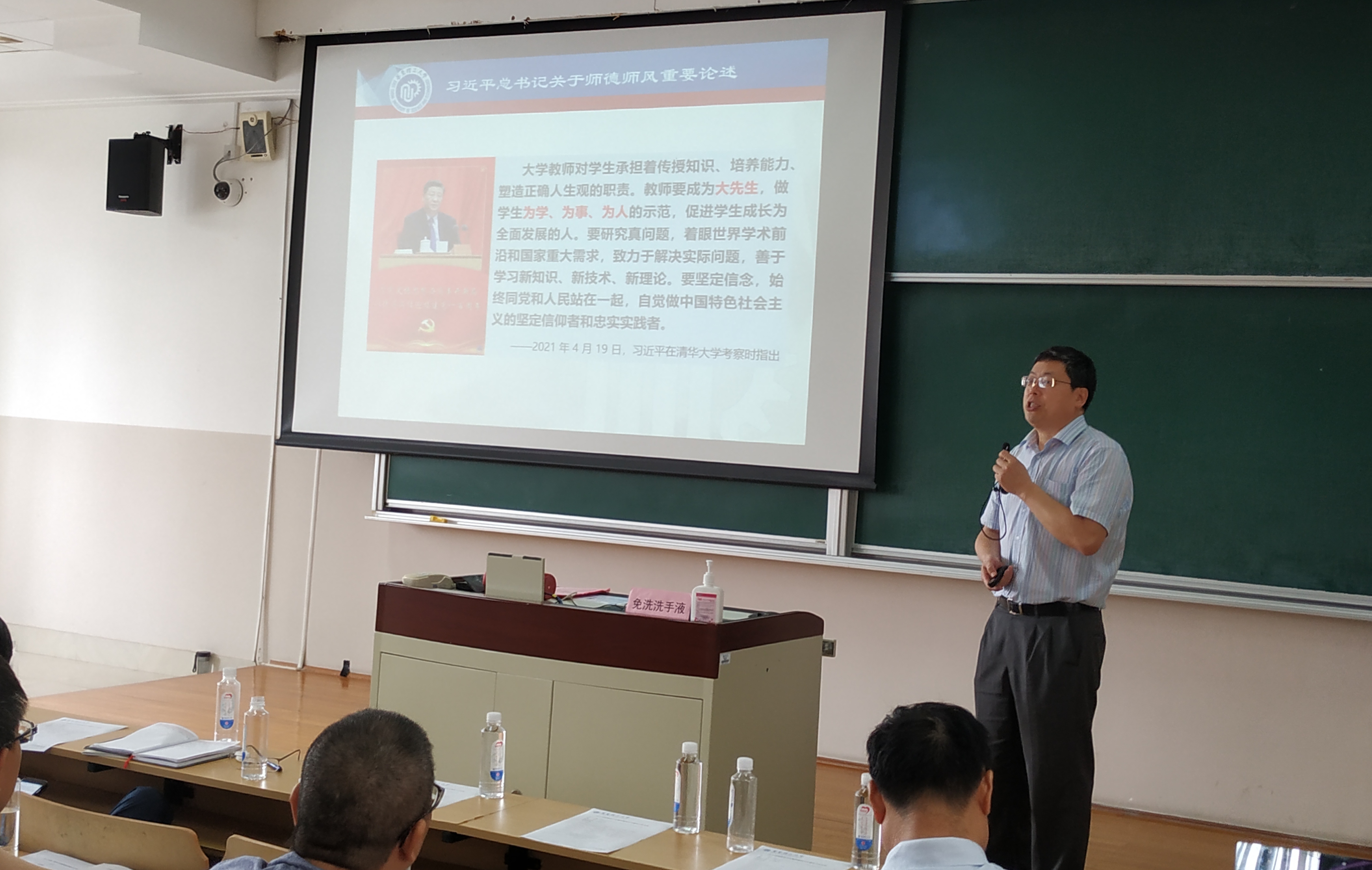 朱学栋带领全体教师共同学习了习近平总书记关于师德师风的重要论述、《新时代高校教师职业行为十项准则》《教育部关于高校教师师德失范行为处理的指导意见》《研究生导师指导行为准则》等内容,详细阐述了新时代背景下高校教师师德规范的主要内容;同时,结合违反高校教师职业行为十项准则典型案例,引导大家以案为鉴、以案明纪,明确师德底线,并希望全体教师认真学习师德师风相关文件精神,不忘立德树人初心,牢记为党育人、为国育才使命,以赤诚之心、奉献之心、仁爱之心投身教育事业,争做新时代“四有”好老师。