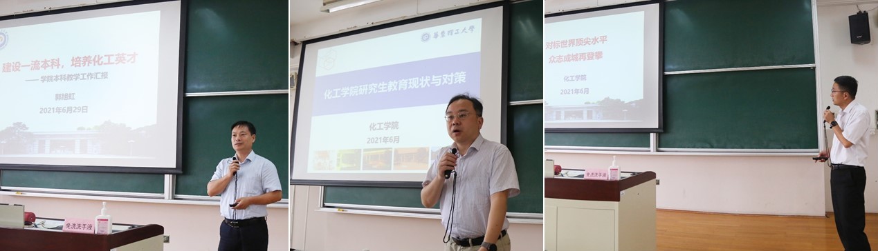 学院各分管负责人向全体教师汇报了各条块的工作情况。副院长郭旭虹、刘殿华从招生、课程建设、教材建设、学生培养、学科竞赛、教育教学成果奖、实践教学基地建设、国际化交流合作等方面详细介绍了“十三五”期间本科与研究生教育教学工作取得的进展,副院长凌昊则重点介绍了学院近几年的科学研究和安全工作情况。在总结成效的同时,三位负责人也分析了当前工作中存在的“短板”,并针对性地提出了“十四五”努力方向。