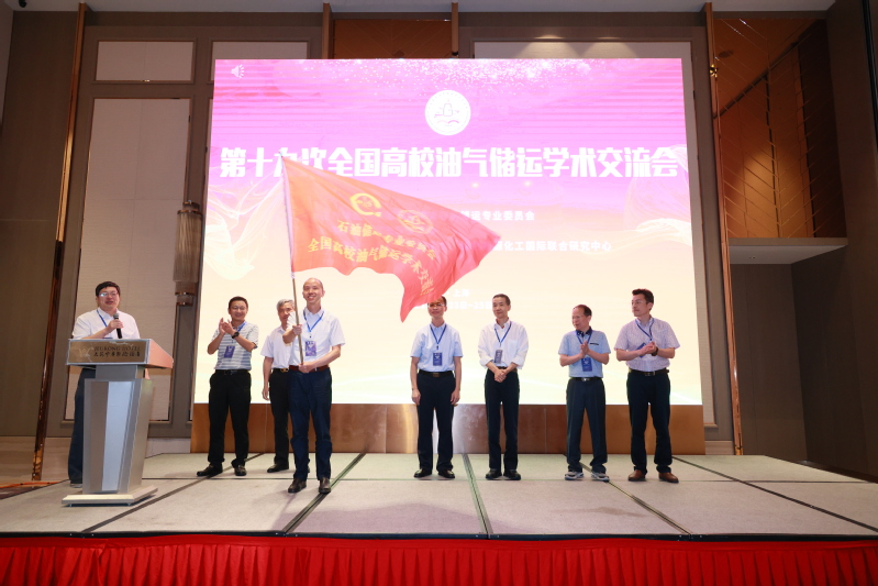 在闭幕式上,张劲军教授发表总结讲话,对会议的组织工作和交流成果给予了高度评价,并宣布2022年“中国油气储运高等教育创办70周年暨第二十次全国高校油气储运学术交流会”将在北京举办,由中国石油大学(北京)与中国石油大学(华东)联合承办。会议按照传统,进行了会旗交接仪式,张劲军秘书长从我校党委副书记陈麒教授手中接过会旗,传递给中国石油大学(北京)副校长付恒升教授。最后,付恒升致辞,欢迎全国油气储运高校师生和企业专家领导一年后北京再相聚。