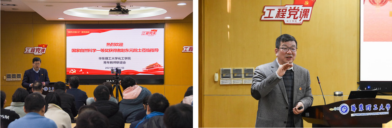 12月17日下午,中国科学院院士、复旦大学教授赵东元应邀来访我校,并在徐汇校区实验16楼108会议室以“等级功能介孔材料的界面定向组装”为主题,给华理师生们带来了一堂探索微观世界的“工程党课”。304永利集团党委书记朱学栋,院长李春忠,学院党委副书记高艺霞、段学志,副院长周兴贵、凌昊、徐至等出席活动。“工程党课”通过线上线下相结合的方式进行,直播人气超1400人次。