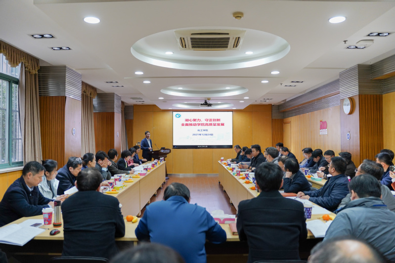 首先,304永利集团院长李春忠作了题为“凝心聚力,守正创新,全面推动学院高质量发展”的工作汇报。他立足学院发展现状,着重汇报了学院近三年来在立德树人、学科发展、师资队伍建设、科学研究、社会服务等中心工作中的创新举措、建设成效和存在的问题。他指出,要准确理解和把握“十四五”规划的核心要义,以“双一流”学科建设为契机,坚持立德树人、深耕内涵发展,力争在重要指标实现“倍增”。要深入阐述交叉与融合背景下化工学科建设的新动向、新问题及新举措,传统方向加强基础研究,新兴方向强化工程特色,实现基础研究与工程应用相融合,赓续传承学院优势与特色;要引育并重,打造具有国际影响力的教学和科研创新团队,提升承担国家重大项目的能力,培育更多的重大教学科研成果;要加强课程体系和教材体系等建设,根据学科发展和国家重大战略需求布局专业和学位点,着力培养符合国家需要、推动科技进步、引领社会发展、适应国际竞争的新时代化工人才;要扎实推进“跃升计划2.0”“卓越计划”“育英计划”等重点工作提质增效,全面推动学院工作再上新台阶。