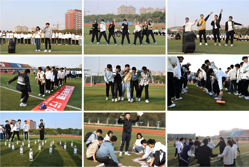 开幕式后,六个比赛项目有序开展。在“你划我猜”环节,参赛的同学们开动脑筋,展示词语含义,在默契的配合中完成了比赛。短暂的歇息后,运动员们一脚一个方块跃过“硫酸河”,向着终点进发。“五人六足”活动中,运动员们喊着整齐的口号,向终点迈进。套圈游戏中,一声哨响,选手们瞄准目标,一击即中,现场不时传来阵阵喝彩声。趣味横生的你划我猜,速度与激情的五人六足,预判精准的套圈技巧,都充分展现了华理师生积极向上的精神风貌。
