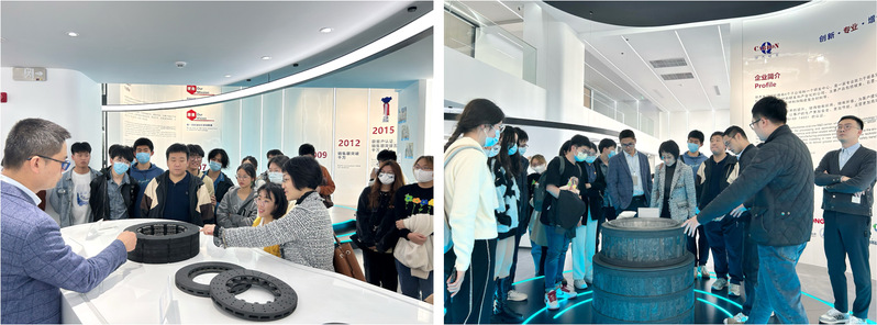 随后,学院师生一行实地走访参观了骐杰碳素、康彤和园区人才公寓。在校企交流环节,谢怡群和潘嵘嵘分别从临港南桥科技城的“产学研融合”和对企业与人才的全方位服务等方面对园区进行了介绍;孛柯博总经理徐进详细介绍了企业发展历史、业务范围和人才需求等情况;我校毕业生分享了自己初入园区企业工作的体会;高艺霞围绕校企合作、科研创新、学科交叉融合等内容,介绍了学院人才培养情况。高艺霞表示,园区与学校的交流源远流长,期待园区与学校能在人才输送、人才培养等方面形成双向互动,实现毕业生与企业的“双向奔赴”,在促进毕业生更高质量就业的同时也促进企业更好发展。园区希望未来双方可以在产学研合作方面进一步加强联动,在产业领域碰撞出新的火花,让园区与学校“走在一起、连在一起、想在一起、干在一起、赢在一起”。