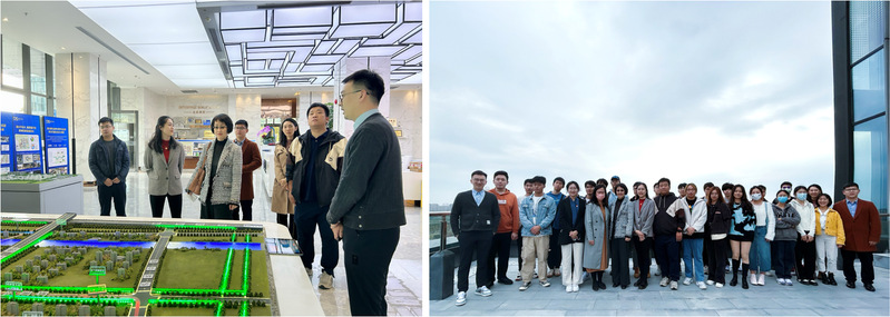 活动伊始,园区产业发展事业部总监助理张亦弛通过临港南桥科技城的沙盘模型,向师生一行介绍了以数字江海数字孪生平台为依托的“编织城市”理念,对园区空间规划、功能布局、未来发展、运营和服务等方面进行了详细介绍。