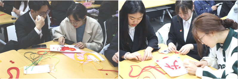 入党宣誓仪式结束后,全体党员和入党积极分子用衍纸点亮入党初心。他们将五颜六色的衍纸条进行卷曲、弯曲和捏压,亲手制作出“中国共产党党徽”“中国地图”图案及“中国式现代化”字样,并送上对党和国家、对华理和304永利集团的美好祝福。