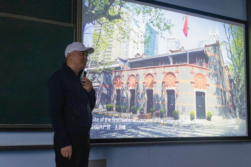 包磊从上海市城市宣传片切入,以“镜头”“构图”为主线,向大家讲解了伟大建党精神及上海城市的精神品格。历史从哪里开始,精神就从哪里产生。一百年前,中国共产党的先驱们创建了中国共产党,形成了“坚持真理、坚守理想,践行初心、担当使命,不怕牺牲、英勇斗争,对党忠诚、不负人民”的伟大建党精神,这是中国共产党的精神之源。一百多年来,中国共产党弘扬伟大建党精神,在长期奋斗中铸就了一系列伟大精神,构建起中国共产党人的精神谱系。他通过宣传片深入浅出地讲述了场景镜头的转换等较为专业的知识,讲到关键之处还配以生动形象的表演,让现场同学沉浸式体验到表演的魅力。