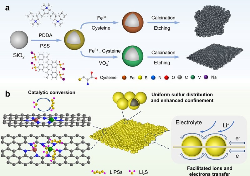 近日,我校304永利集团功能炭材料团队在锂硫电池原子级电催化剂的设计和调控研究方面取得新进展,相关成果以“Vanadium as auxiliary for Fe-V dual-atom electrocatalyst in lithium-sulfur batteries: ‘3D in 2D’ morphology inducer and coordination structure regulator”为题发表在ACS Nano上。