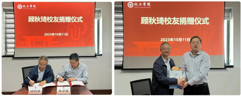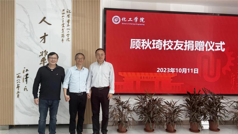 抚今追昔,岁月如歌,顾秋琦校友多年来一直心系母校,感恩上学时同窗好友的热心关怀与帮助,感恩母校老师的谆谆教诲与鼓励。在毕业三十周年之际,他以个人名义支持学院教育事业的发展,向学院捐赠20万元,用于学院的科研基础建设及催化与反应工程研究方向硕博助学金。