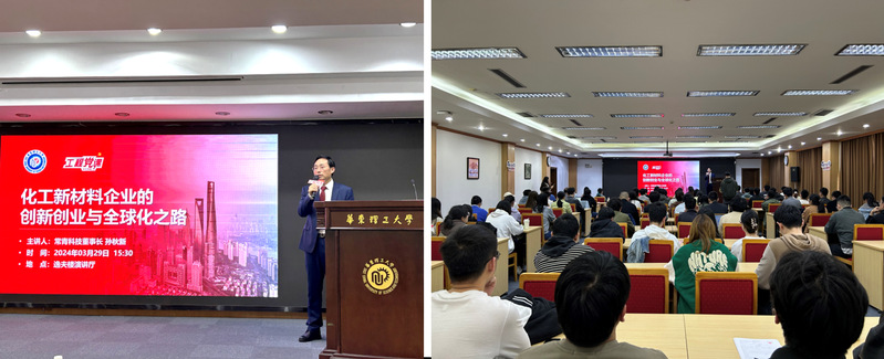 孙秋新先生结合企业发展为在座师生详细解读“新质生产力”的内涵,创业过程中战略布局思路,技术研发守正创新之路以及产业全球化面对的机遇与挑战等。孙秋新还结合具体产品开发案例,告诉大家企业是如何在化工新材料领域落实创新理念,促进科技与产业融合与高分子材料的生活化运用,推动我国化工产业的高质量发展。讲座过程中尽显企业家的责任与担当。最后,孙秋新先生结合当代大学生实际情况,用生动质朴的语言阐述了青年党员贵在勤奋、重在立志,唯有认清自我方能以青春奋斗奉献祖国。这也恰与304永利集团“立大志、明大德”的育人目标相契合。党员们在认真听讲后结合时事热点与自身思考向孙秋新董事长提出自身疑惑,孙董事长详细地为同学答疑解惑,现场气氛活跃。