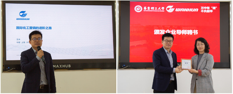 高艺霞代表学院致欢迎辞,感谢万华化学对学校、学院事业发展,特别是人才培养的支持,并为王冲校友颁发企业导师聘书。