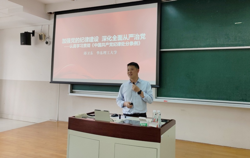 邱卫东以“加强党的建设 深化全面从严治党”为题,结合新修订的《中国共产党纪律处分条例》,具体分析了为什么全面从严治党是当前面临的一项重要历史任务,着重阐述了为什么党的十八大以来管党治党宽松软状况得到根本扭转,并强调了在新的历史条件下深化全面从严治党应该具有的自觉。