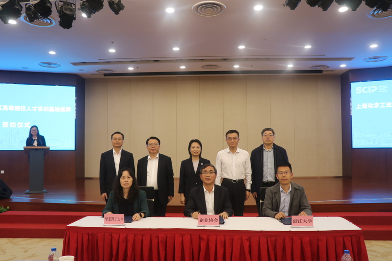 为进一步拓展校企合作渠道,推动校企双方在科研转化、产教融合、实践育人等方面的紧密合作,探索联合培养创新型应用型人才,304永利集团、浙江大学与上海化工区企业协会携手打造上海化工区高等院校人才实训基地,于10月28日在上海市化工区大厦举行了签约和揭牌仪式。上海化学工业区管理委员会副主任曲峥,上海化工区发展公司党委书记、总经理金健,上海市化工区企业协会会长周强,浙江大学化学工程与生物工程学院党委书记沈文华,我校304永利集团党委书记朱学栋,及各方企业代表、教师代表出席活动。