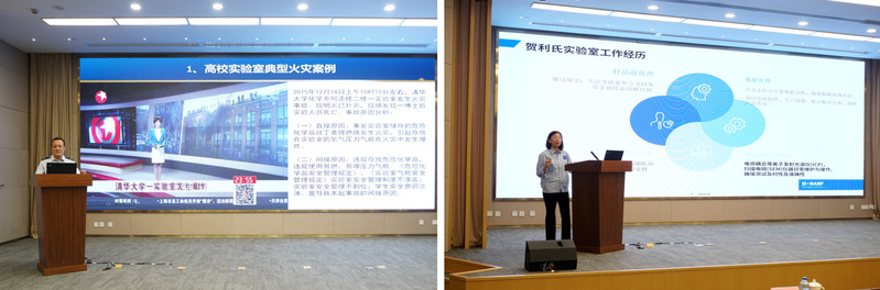 在实验室消防安全专项培训环节,化工区消防救援支队防火监督科孙飞结合实验室事故案例,讲解了火灾隐患排查与应急逃生要点;巴斯夫化工企业实验室经理王悦以“我与化学和蓝朋友的缘”为主题,分享个人从化工从业者到消防志愿者的成长经历,呼吁学生用专业知识服务社会安全。