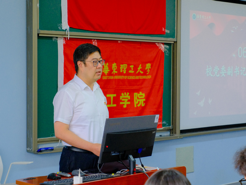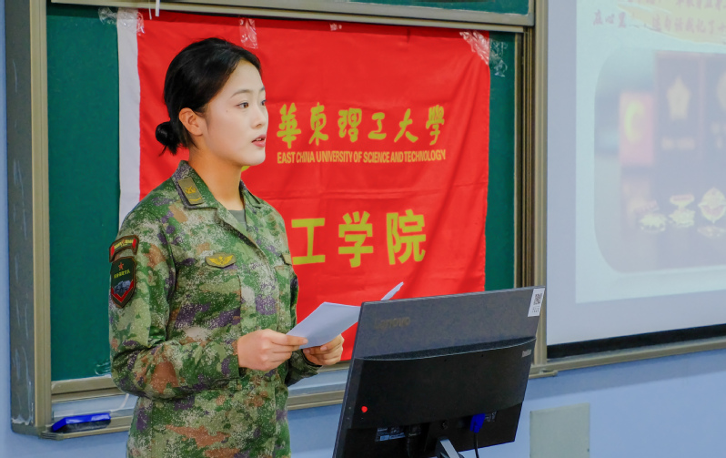 最后,沈海涛进行总结讲话。围绕认真学习习近平总书记的重要讲话,沈海涛向青年学生提出三点希望:一要听党指挥,坚定理想信念,把个人追求融入党和人民的事业;二要能打胜仗,发扬斗争精神,增强专业能力,尤其要发挥理工科学子的学科优势;三要作风优良,锻造铁一般的信念和纪律,在艰苦奋斗中展现青春本色。他强调,希望同学们积极向李箐琳同学学习,传承华理人勤奋求实、励志明德的优良传统,发扬化工人的实干精神和报国情怀,努力成长为可堪大用、能担重任的时代新人。