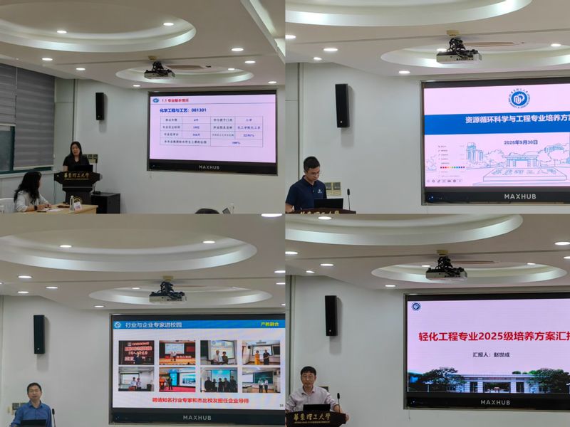 随后,各系主任依次汇报了化学工程与工艺、资源循环科学与工程、油气储运工程和轻化工程四个本科专业的培养方案细节。汇报内容涵盖专业发展概况、特色优势、培养目标、毕业要求及课程体系框架,全面呈现各专业当前培养模式,为后续研讨提供了扎实的基础素材。