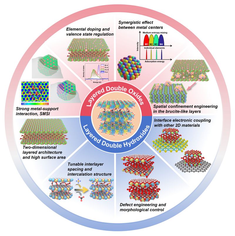近日,我校催化反应工程团队段学志教授和曹约强特聘研究员在层状双金属氢氧化物(Layered Double Hydroxides, LDHs)基催化剂研究方面取得重要进展。受国际知名学术期刊Angewandte Chemie International Edition邀请,结合团队近年来基于LDHs材料的系列研究工作回顾总结了LDHs及其衍生催化剂在精准催化领域的研究进展,撰写了题为“Layered Double Hydroxides as Building Blocks for Precise Catalysis”的综述论文,深入探讨了其在光、电、热催化中活性位点精准调控方面的应用,为设计高效、稳定的新型催化剂、推动可持续能源转化与绿色化工发展提供借鉴。